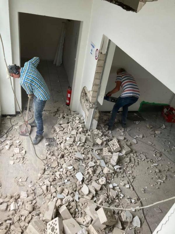 Heute haben wie mit starker Unterstützung einige Wände abgerissen. Diese sollen weg, damit wir hier eine schöne Fläche für unseren Saal mit schicker Theke entstehen lassen können.