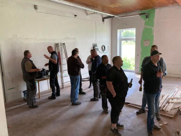 Es müssen die Fliesen im neuen Flur des Dorfgemeinschaftshauses rausgeschlagen werden und ein paar qm Estrich.