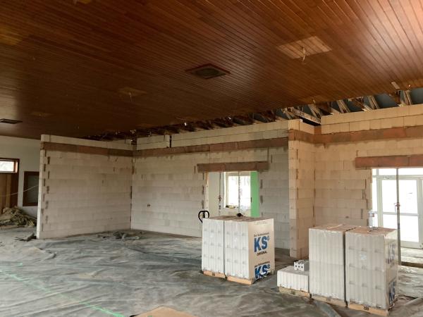 Nach einiger Verzögerung, was unterschiedlichste Gründe hatte, geht es jetzt endlich für jeden sichtbar weiter. Die ersten Wände stehen und die Gewerke tauschen sich untereinander zum weiteren Vorgehen aus.