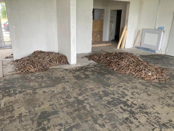 Die Innenarbeiten schreiten immer weiter voran. Die Ausschreibung des neuen Fußbodens ist beendet.